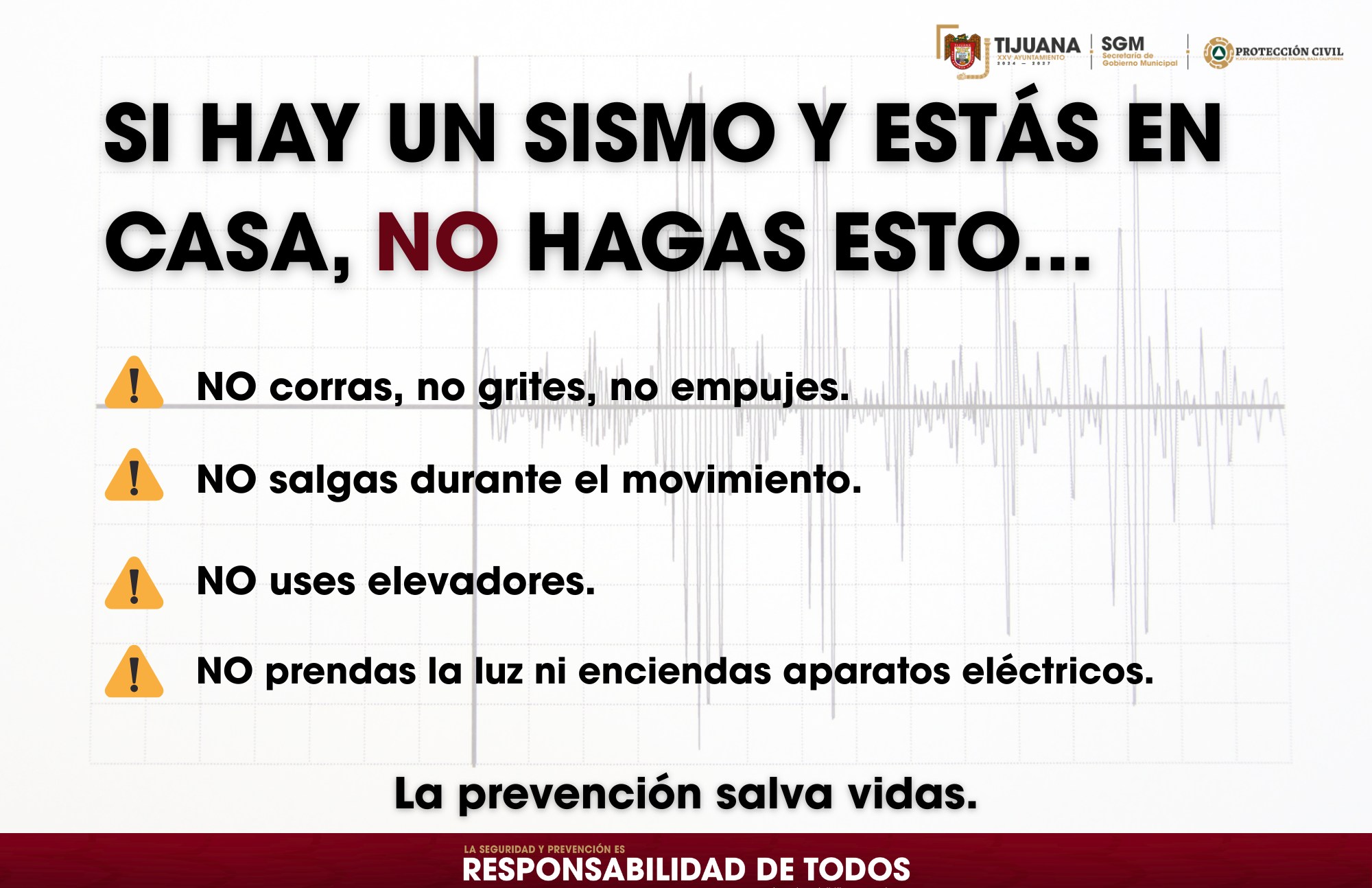 Tijuana se encuentra en una zona sísmica y en cualquier momento, sin previo aviso, puede registrarse un movimiento telúrico, por lo que debemos estar preparados, conscientes de las acciones que debemos evitar para preven...